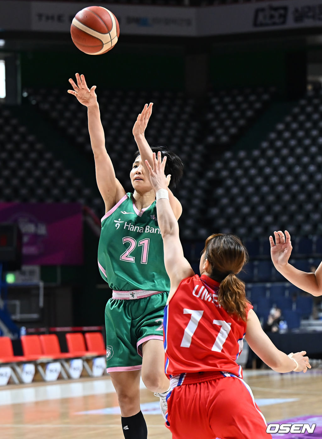 2일 부산 사직실내체육관에서 2025 BNK금융 박신자컵 조별예선 부천 하나은행과 덴소 아이리스(일본)의 경기가 열렸다.