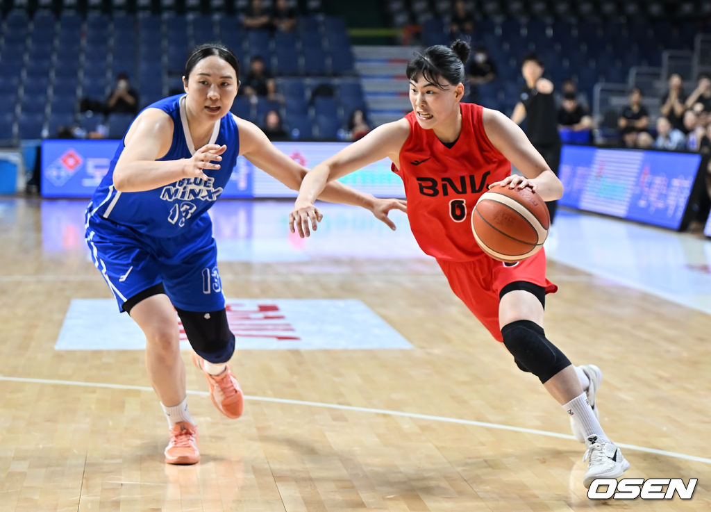 부산 BNK 썸 이소희가 용인 삼성생명 김단비의 마크를 피해 골밑돌파를 시도하고 있다. 2025.09.02 / foto0307@osen.co.kr