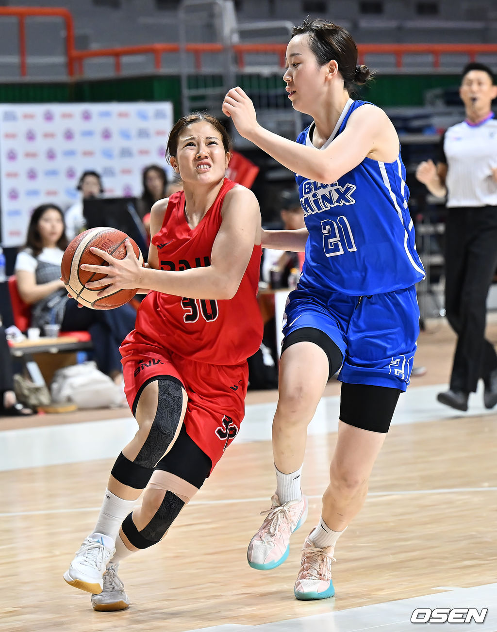 부산 BNK 썸 스나가와 나츠카가 용인 삼성생명 최예슬의 마크를 피해 골밑돌파를 시도하고 있다. 2025.09.02 / foto0307@osen.co.kr