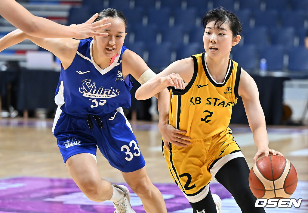청주 KB스타즈 허예은이 인천 신한은행 히라노 미츠키의 마크를 피해 골밑돌파를 시도하고 있다. 2025.09.02 / foto0307@osen.co.kr