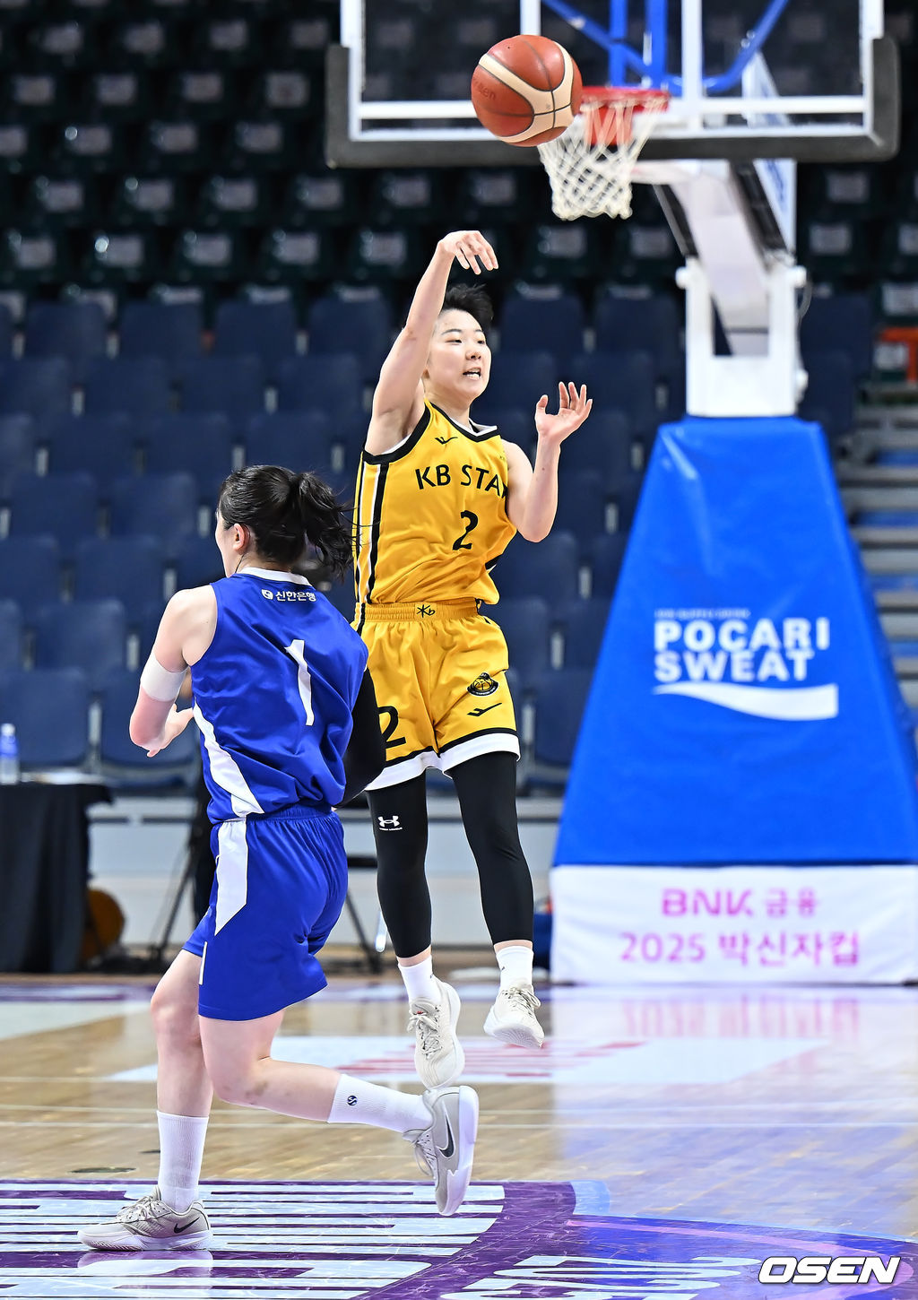 2일 부산 사직실내체육관에서 2025 BNK금융 박신자컵 조별예선 청주 KB스타즈와 인천 신한은행 경기가 열렸다.
