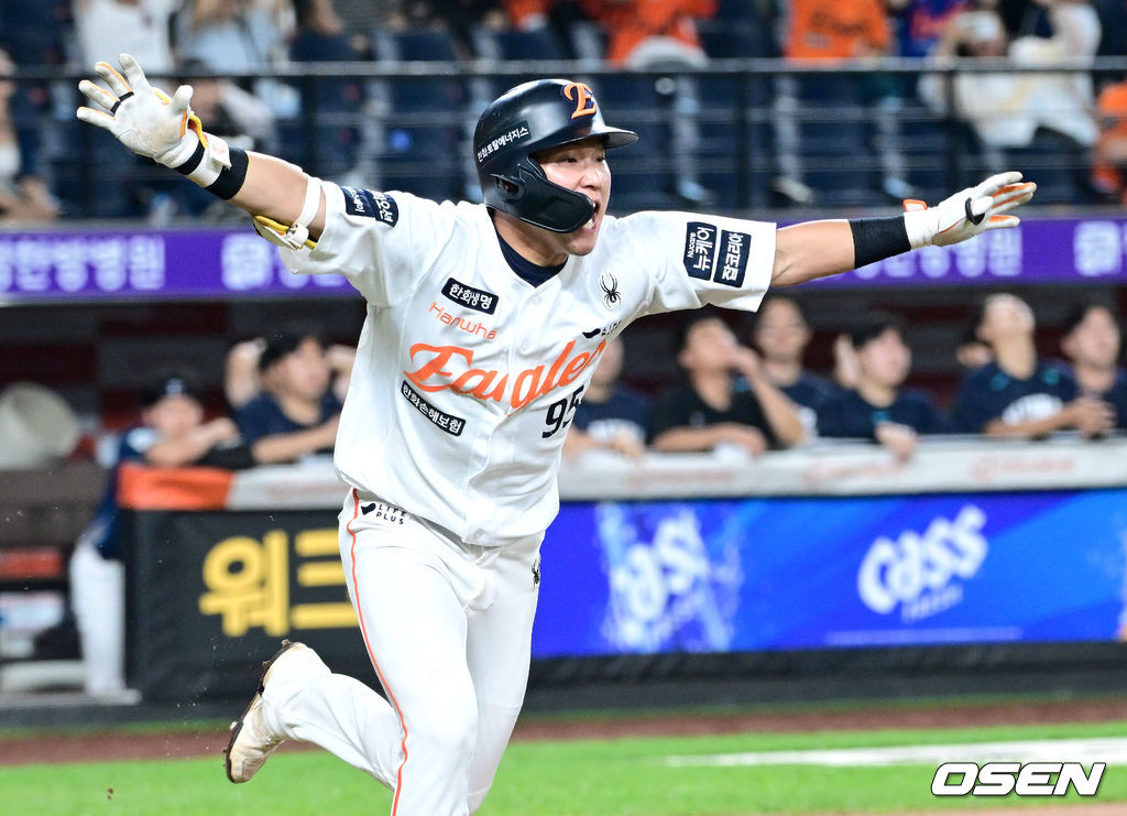 연장 10회말 1사 1, 3루 상황 한화 황영묵이 끝내기 안타를 날리고 환호하고 있다. 2025.09.03 / dreamer@osen.co.kr