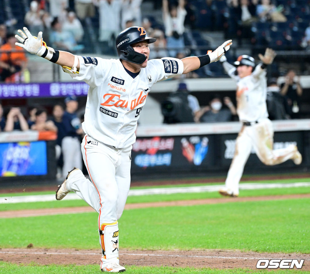 연장 10회말 1사 1, 3루 상황 한화 황영묵이 끝내기 안타를 날린 뒤 환호하고 있다. 2025.09.03 / dreamer@osen.co.kr