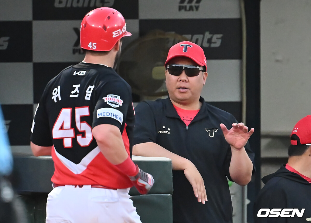 이날 KIA는 윤도현(3루수) 박찬호(유격수) 김선빈(2루수) 최형우(지명타자) 나성범(우익수) 오선우(1루수) 김석환(좌익수) 김태군(포수) 김호령(중견수)으로 이어지는 라인업을 짰다. 위즈덤은 라인업에 이름을 올리지 못한 대신 실내훈련장에서 배팅훈련을 시작했다.