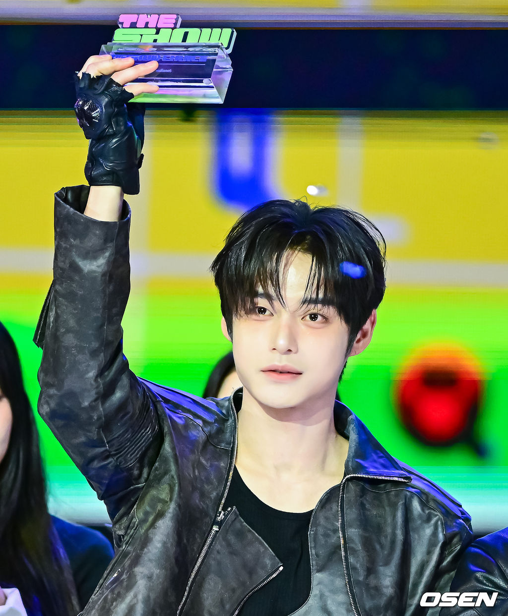 가수 제로베이스원 김지웅이 더쇼초이스에 선정되며 기뻐하고 있다. 2025.09.09 /jpnews@osen.co.kr