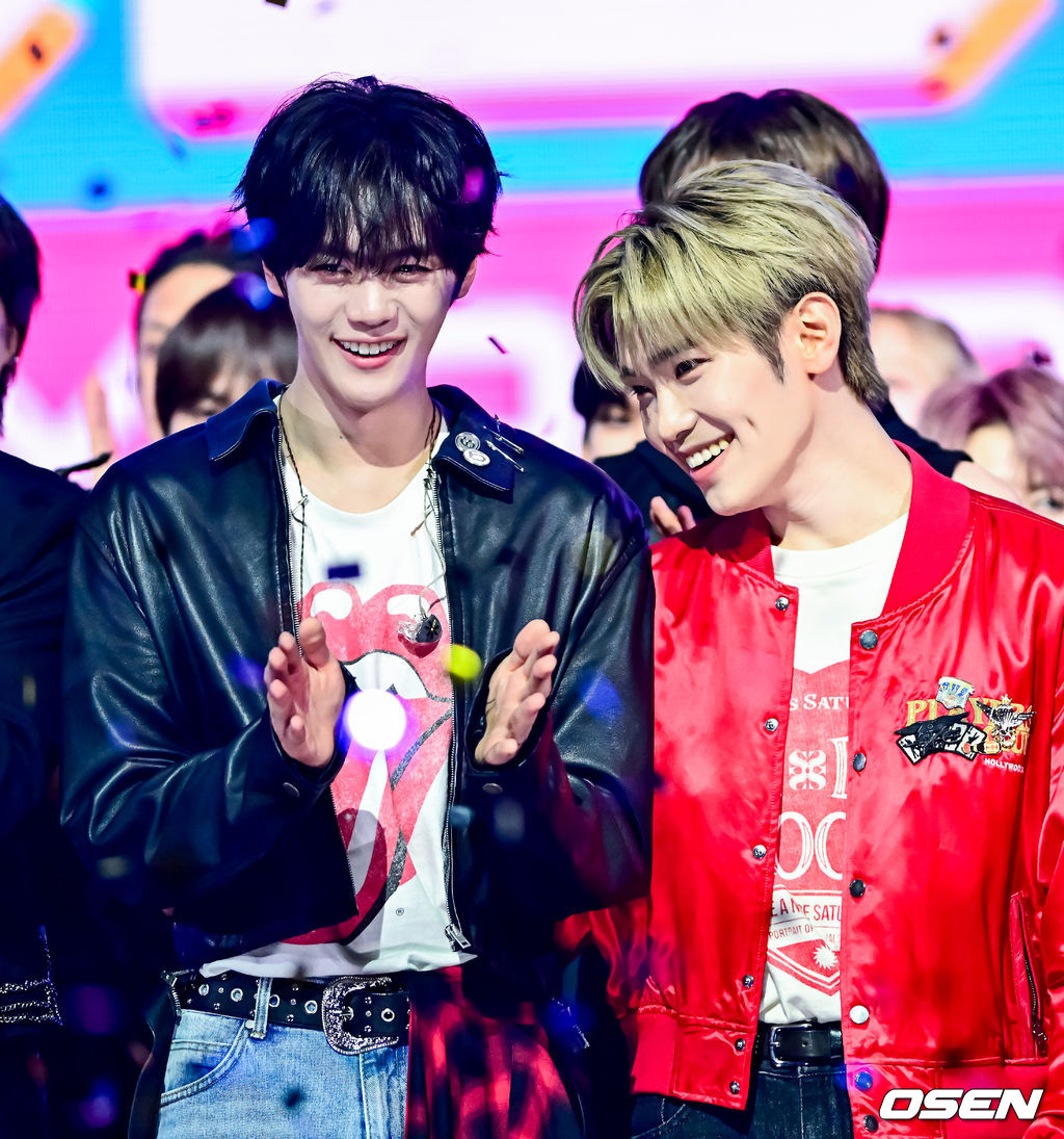 가수 제로베이스원 김규빈, 김태래가 챔피언 송에 선정되며 기뻐하고 있다. 2025.09.10 /jpnews@osen.co.kr
