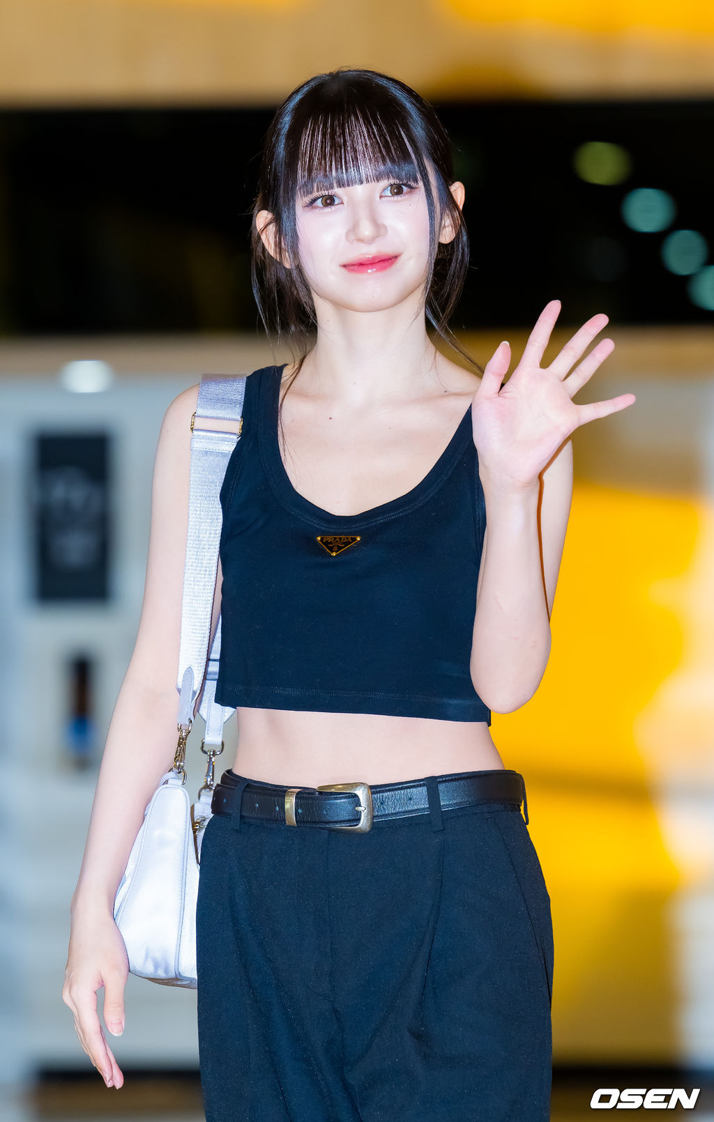 메이딘S 마시로가 출국길에 포즈를 취하고 있다. 2025.09.11 / rumi@osen.co.kr