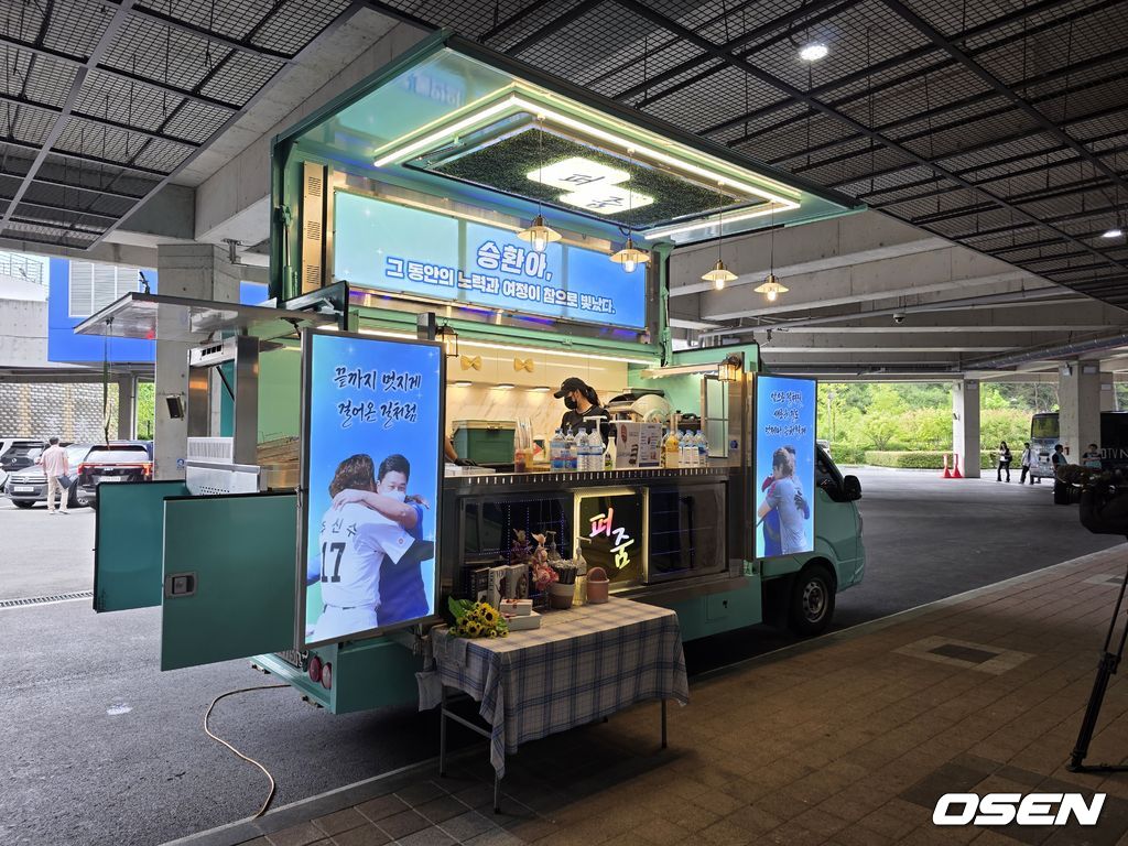 커피 트럭에는 추신수 보좌와 오승환이 포옹하는 사진과 함께 ‘승환아, 그 동안의 노력과 여정이 참으로 빛났다’ ‘끝까지 멋지게 걸어온 길처럼 앞으로 펼쳐질 새로운 길도 언제나 응원할게’라는 추신수 보좌의 메시지도 적혀 있었다.