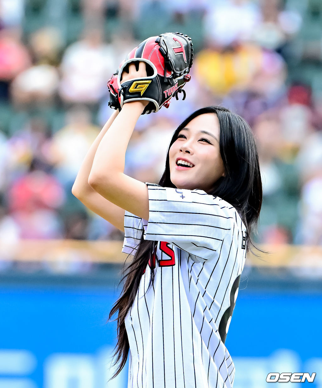 경기에 앞서 가수 비비가 시구를 하고 있다. 2025.09.13 /jpnews@osen.co.kr