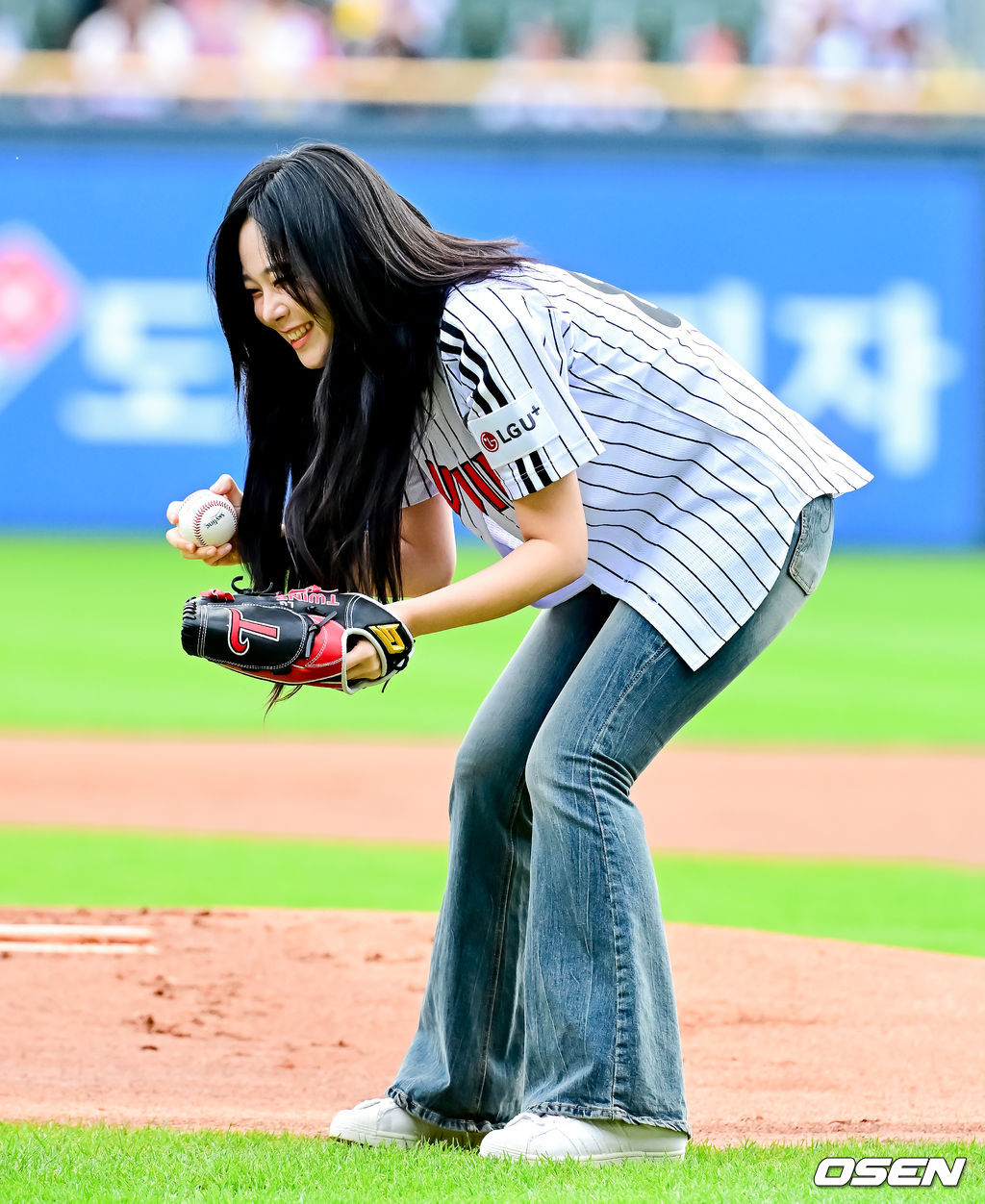 경기에 앞서 가수 비비가 시구를 하고 있다. 2025.09.13 /jpnews@osen.co.kr