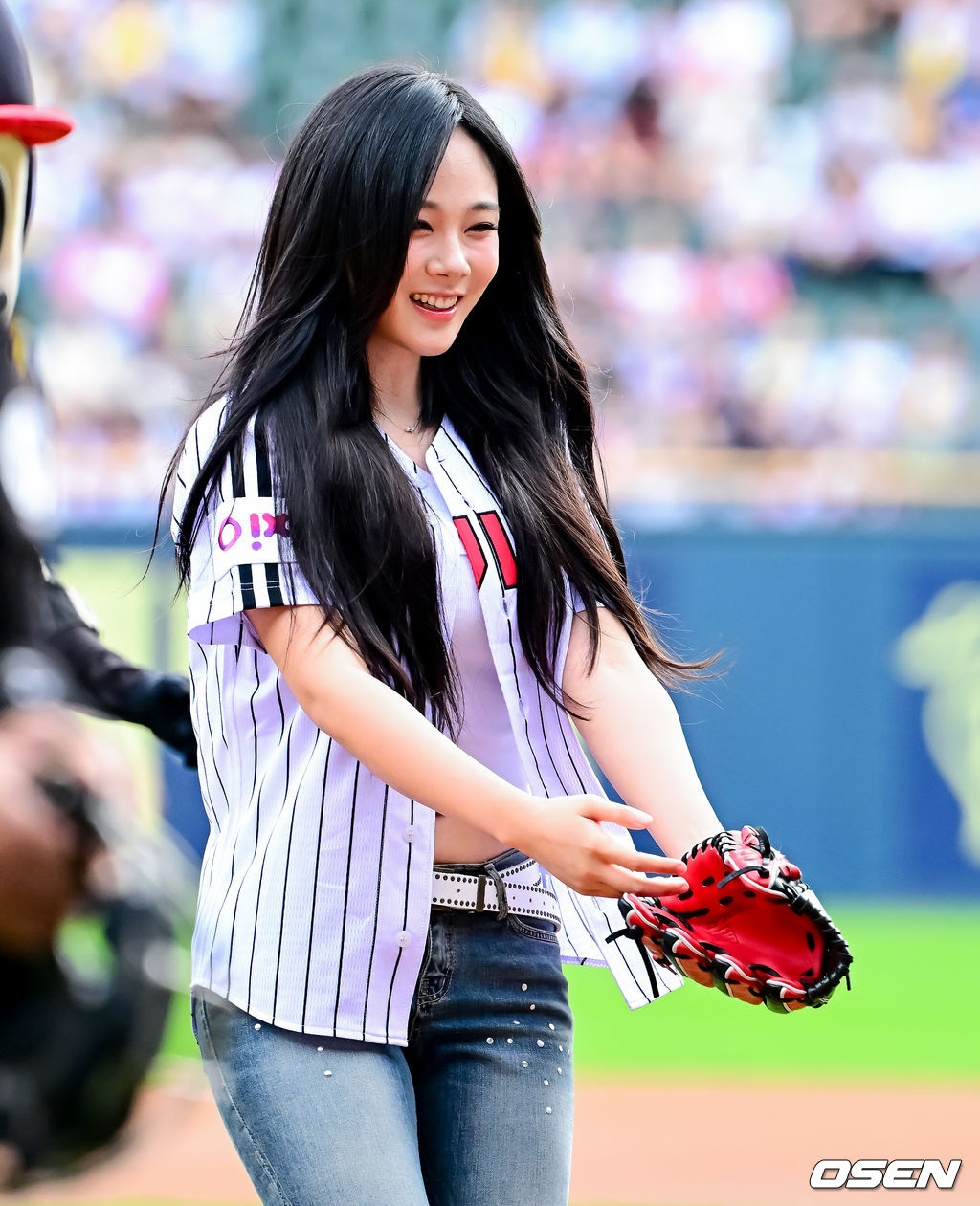 경기에 앞서 가수 비비가 시구를 하고 있다. 2025.09.13 /jpnews@osen.co.kr