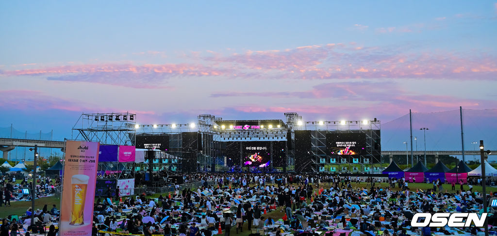 가을 저녁 노을이 지는 가운데 무대 준비 중인 2025 사운드 플래닛 페스티벌. 2025.09.14 / soul1014@osen.co.kr