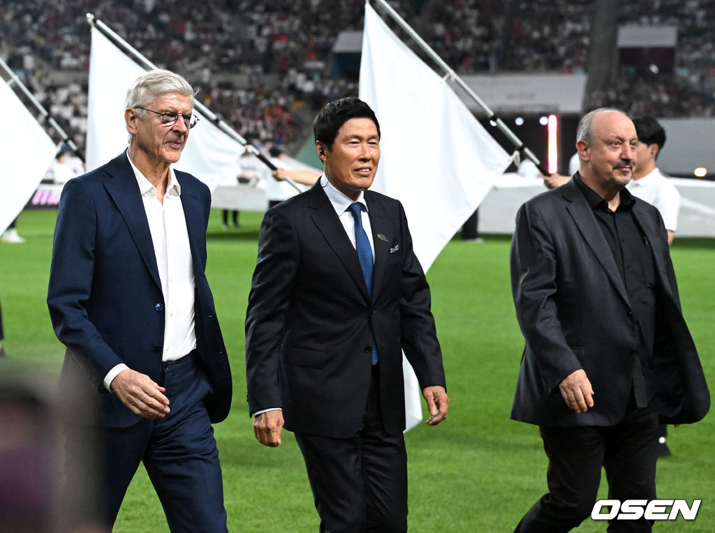 아르센 벵거, 차범근, 베니테스 감독이 식전 행사를 하고 있다. 2025.09.14 /sunday@osen.co.kr