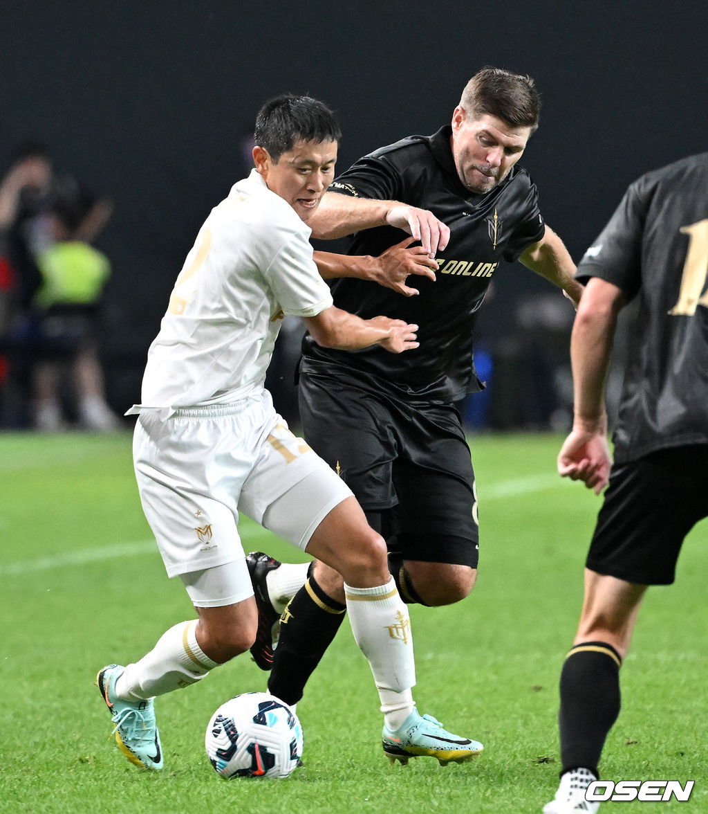 후반 실드 이영표와 스피어 제라드가 볼다툼을 하고 있다. 2025.09.14 /sunday@osen.co.kr