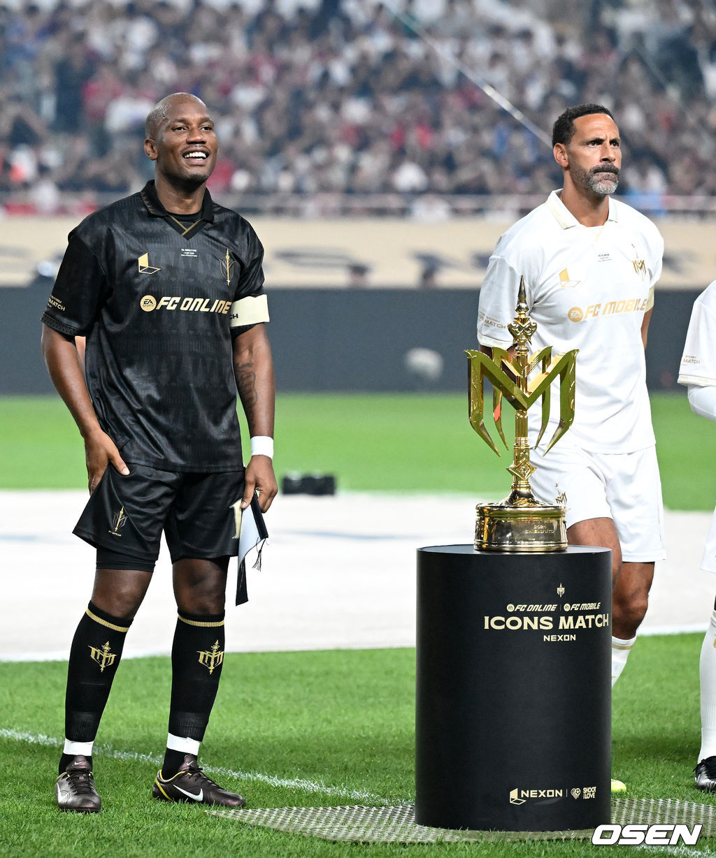 경기에 앞서 스피어 드로그바와 실드 퍼디난드가 식전 행사를 가지고 있다. 2025.09.14 /sunday@osen.co.kr
