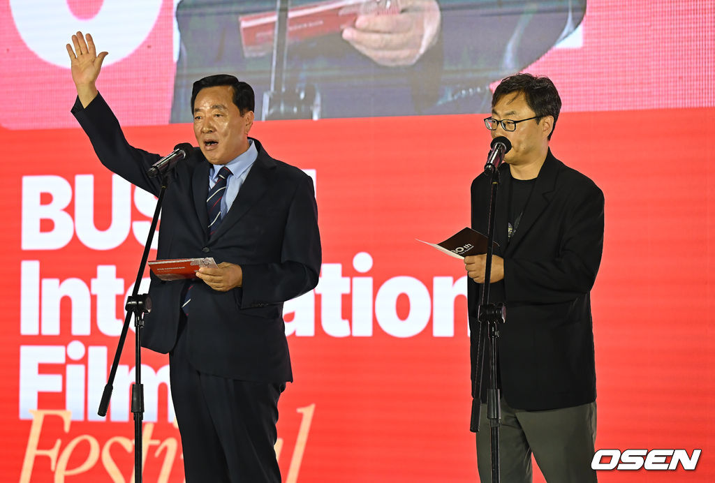 최진봉 부산 중구청장과 정한석 부산국제영화제 집행위원장이 전야제 개막 선언을 하고 있다. 2025.09.16 / foto0307@osen.co.kr