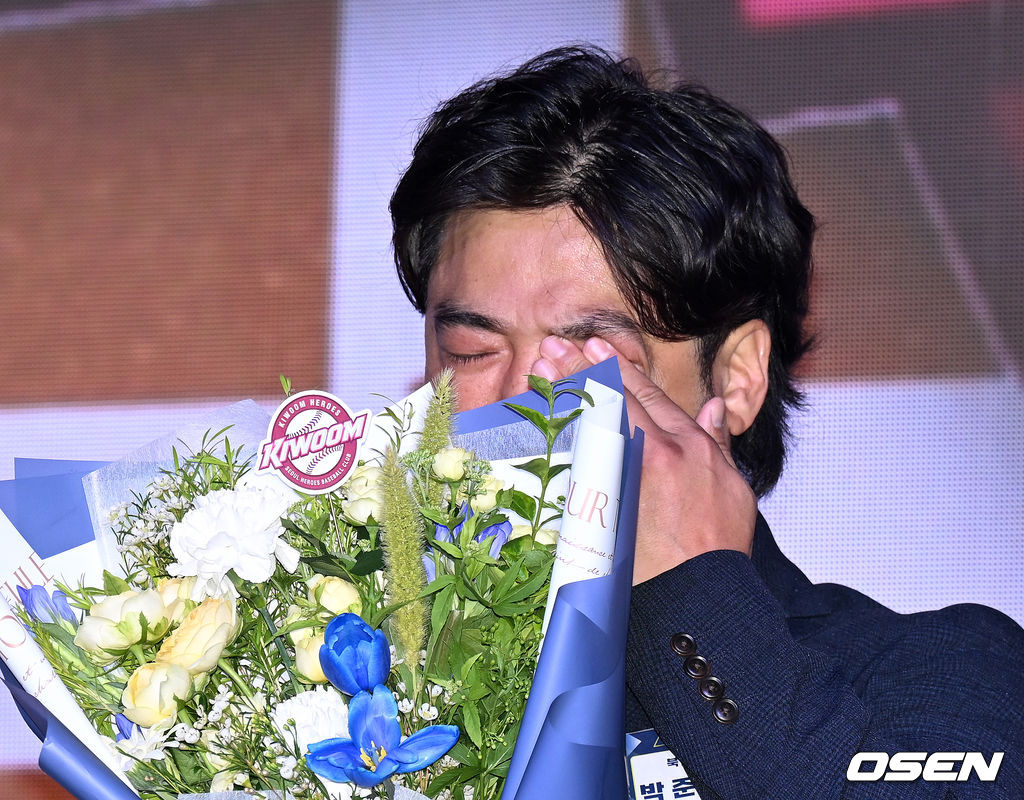 키움에 지명된 북일고 박준현의 아버지 박석민 전 코치가 눈물을 흘리고 있다. 2025.09.17 /sunday@osen.co.kr