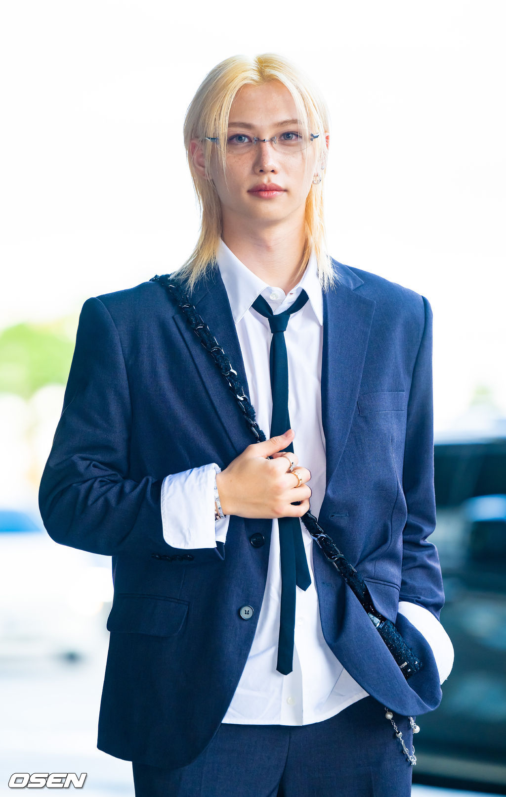 스트레이 키즈 필릭스가 출국에 앞서 포즈를 취하고 있다. 2025.09.17 / soul1014@osen.co.kr