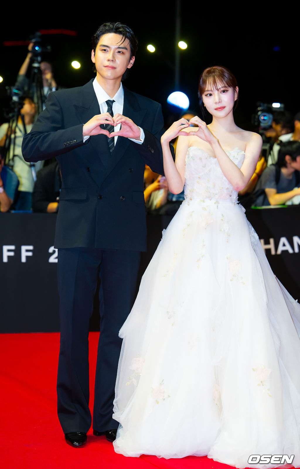 배우 김도훈과 이열음이 레드카펫을 밟으며 포즈를 취하고 있다. 2025.09.17 / rumi@osen.co.kr