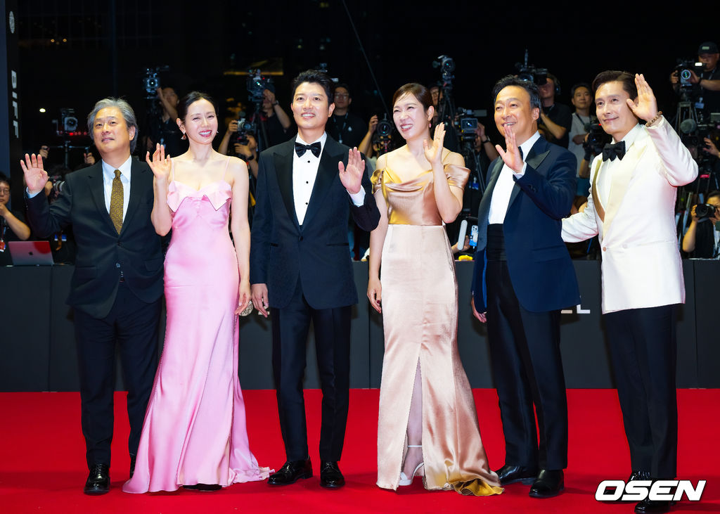 박찬욱 감독, 이병헌, 손예진, 박희순, 염혜란, 이성민, 이병헌이 레드카펫을 밟으며 포즈를 취하고 있다. 2025.09.17 / rumi@osen.co.kr