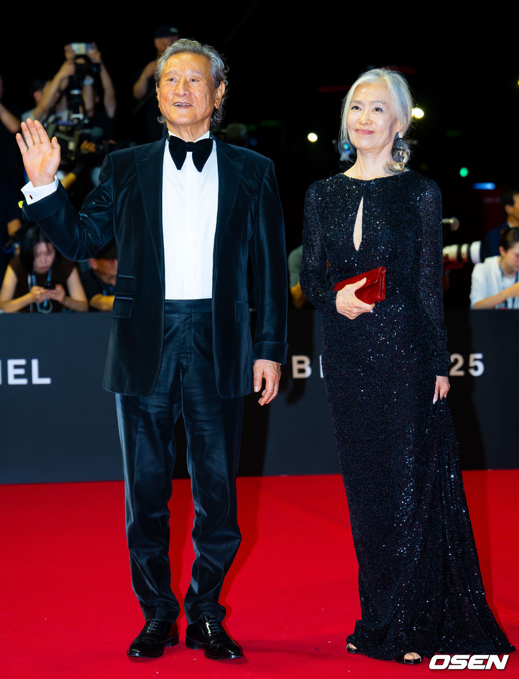 배우 박근형과 예수정이 레드카펫을 밟으며 포즈를 취하고 있다. 2025.09.17 / rumi@osen.co.kr