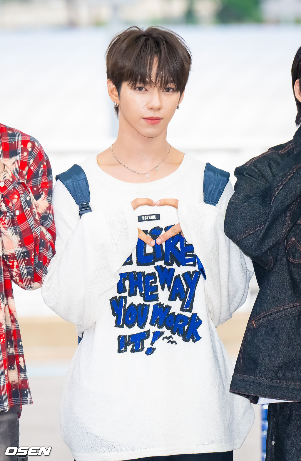 아홉 멤버 제이엘이 출국 앞서 포즈를 취하고 있다. 2025.09.18 / soul1014@osen.co.kr