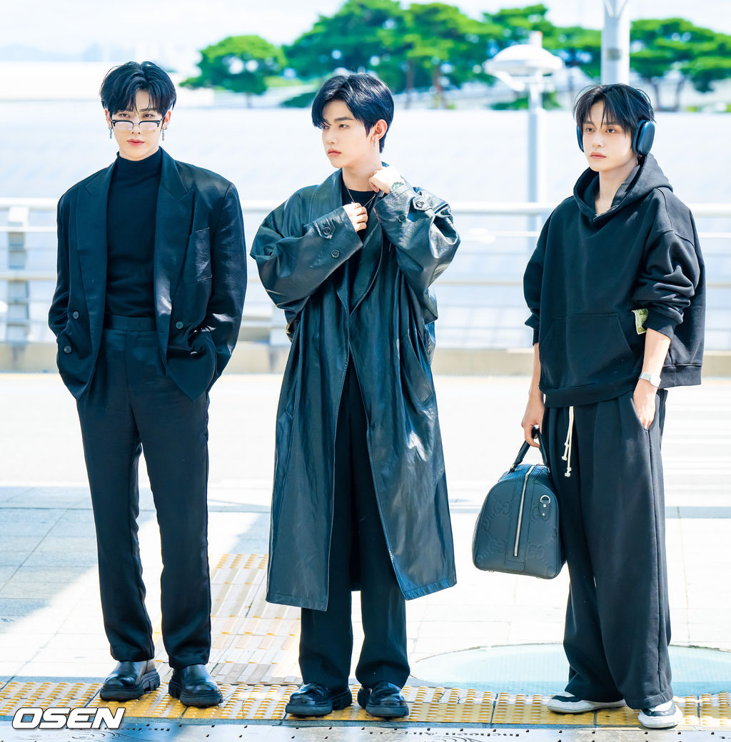 제로베이스원 멤버 리키와 장하오, 김지웅이 출국에 앞서 신호를 기다리고 있다. 2025.09.18 / soul1014@osen.co.kr