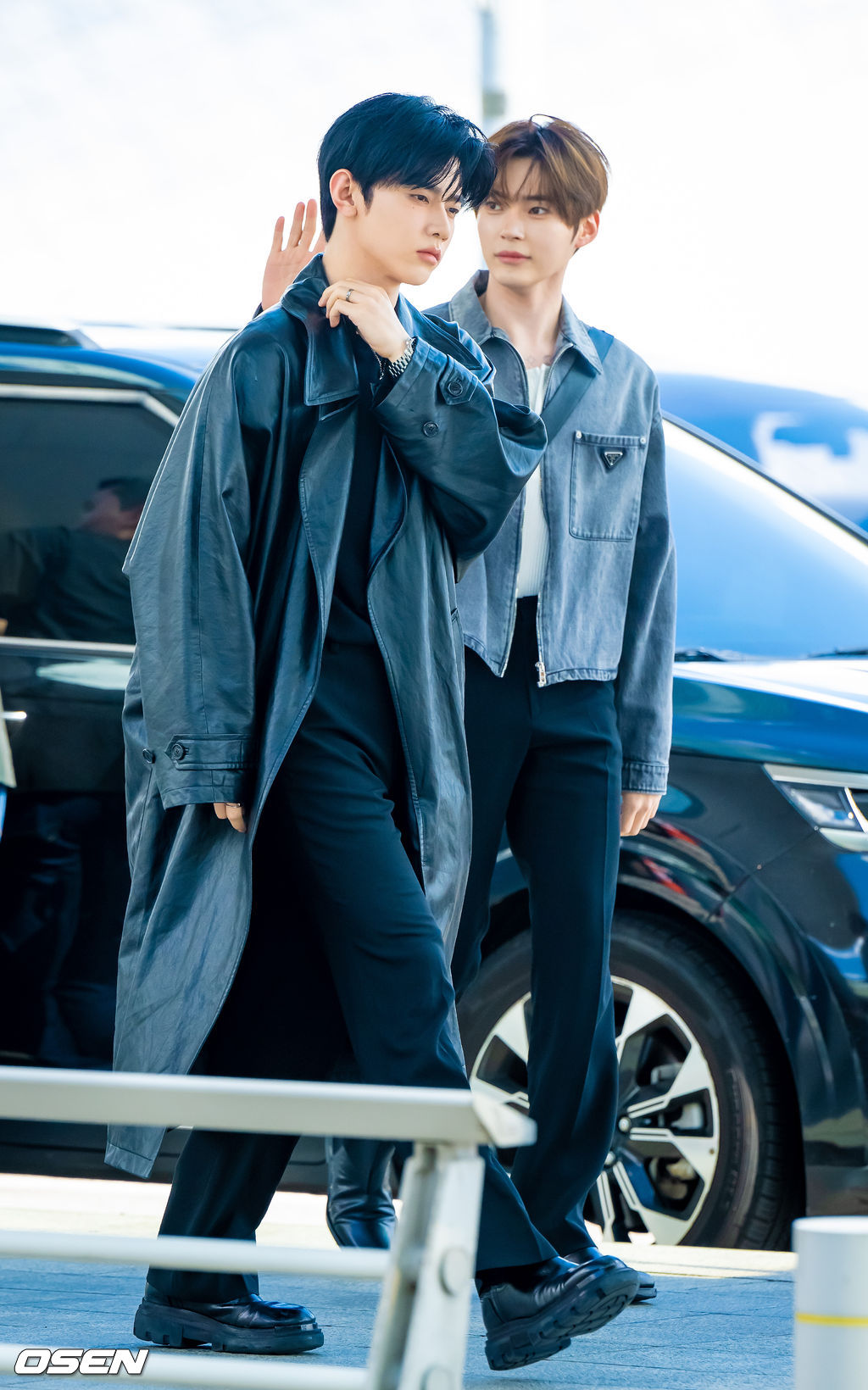 제로베이스원 멤버 장하오와 성한빈이 출국장으로 이동하고 있다. 2025.09.18 / soul1014@osen.co.kr