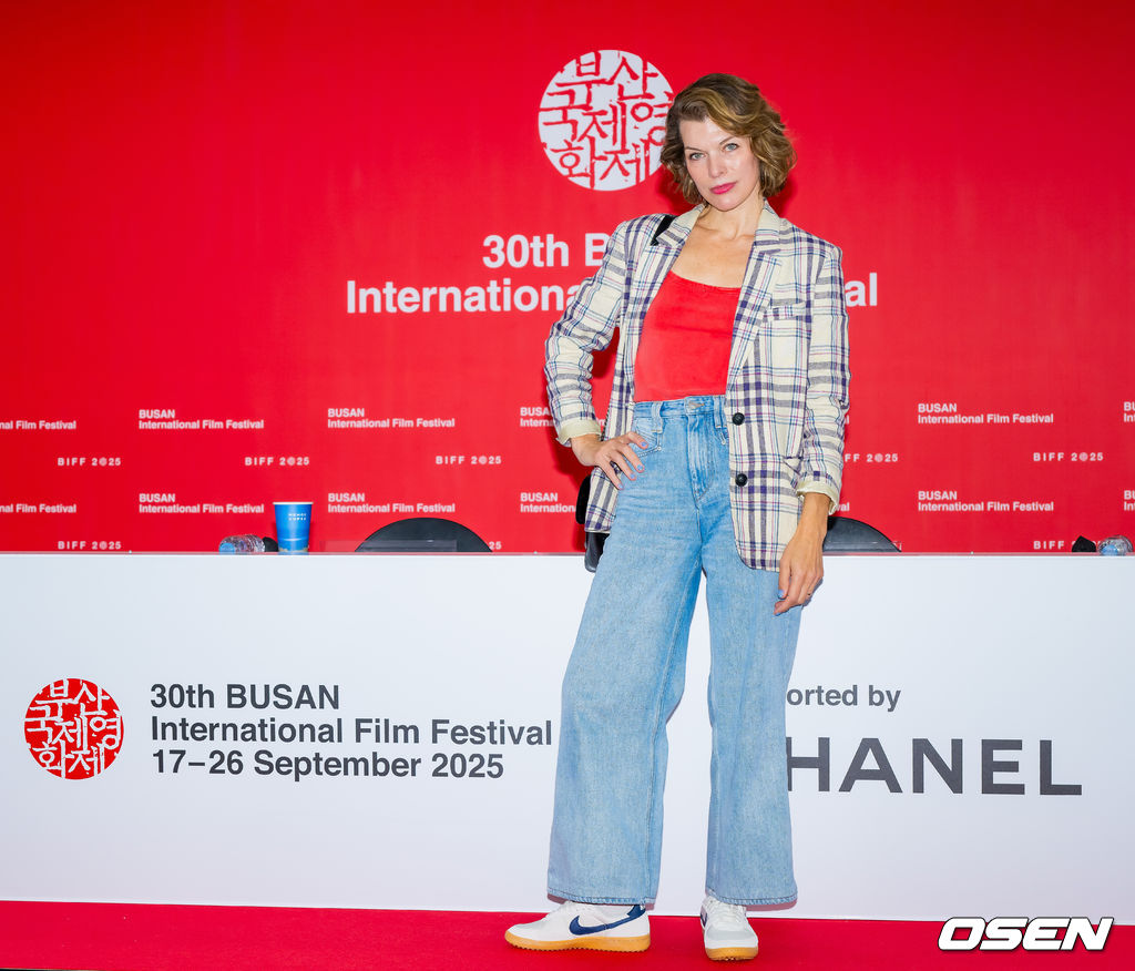 배우 밀라 요보비치가 기자간담회에서 포즈를 취하고 있다. 2025.09.18 / rumi@osen.co.kr