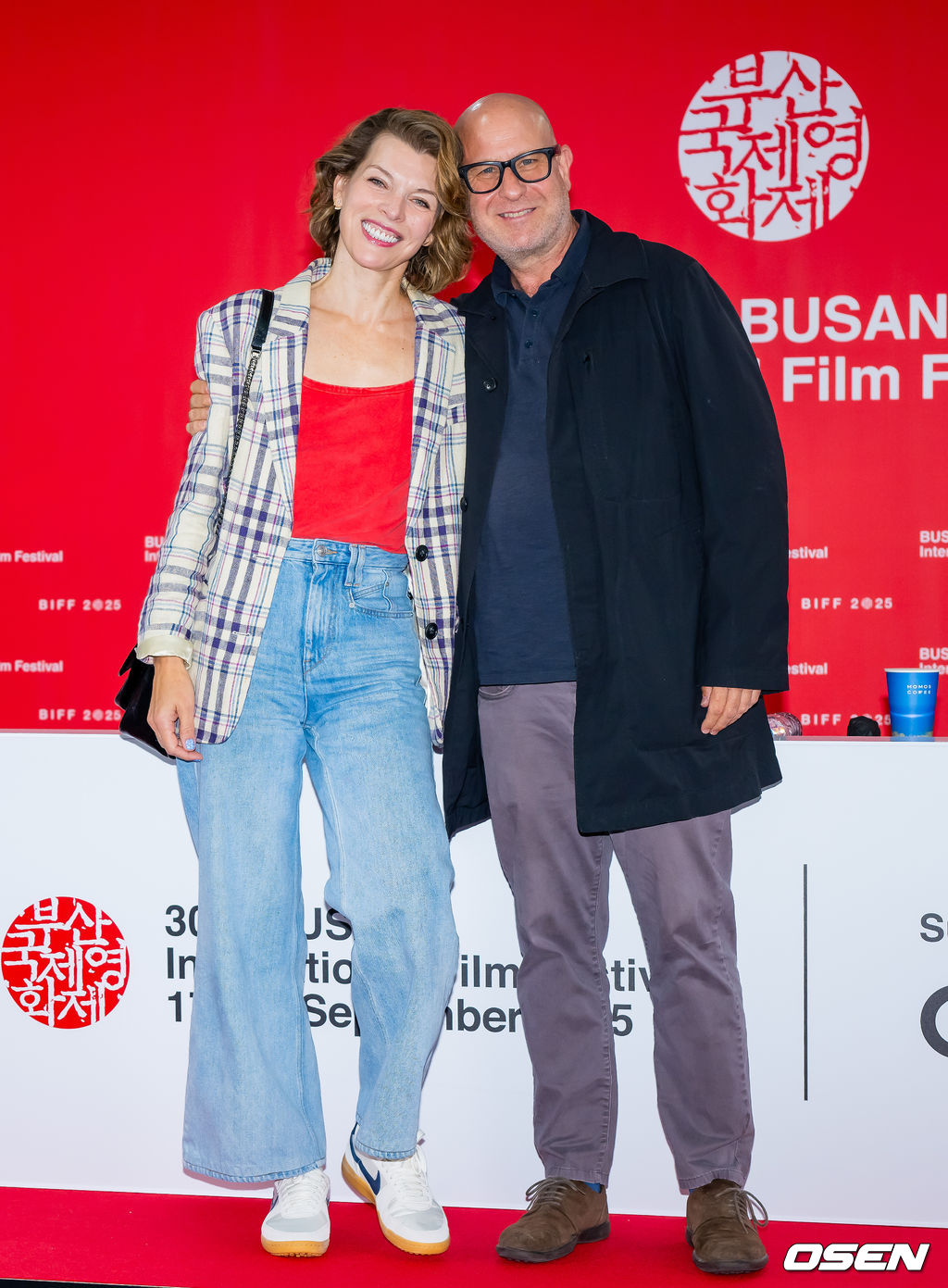 배우 밀라 요보비치와 애드리언 그런버그 감독이 기자간담회에서 포즈를 취하고 있다. 2025.09.18 / rumi@osen.co.kr
