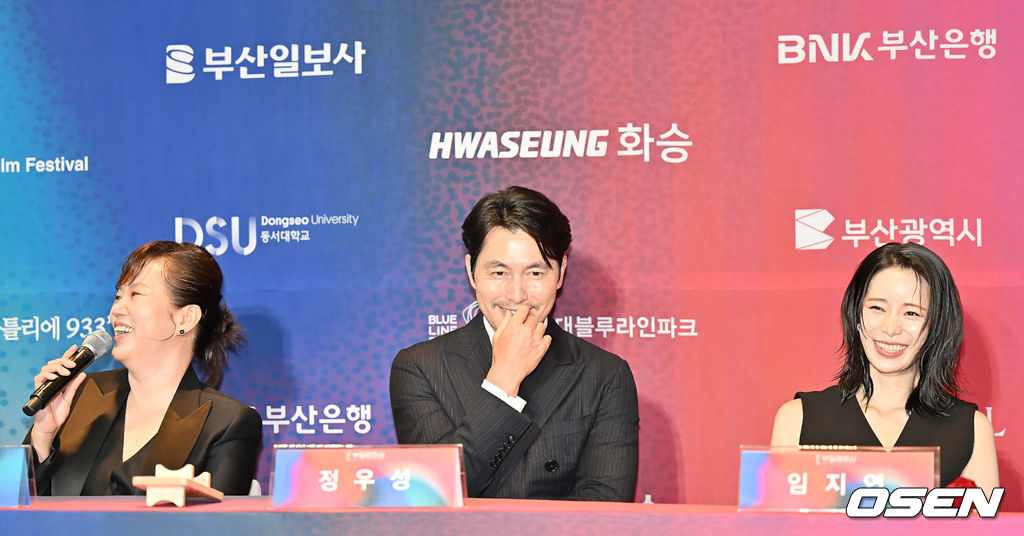 정우성과 임지연이 김금순의 소감을 들으며 활짝 웃고 있다. 2025.09.18 / foto0307@osen.co.kr