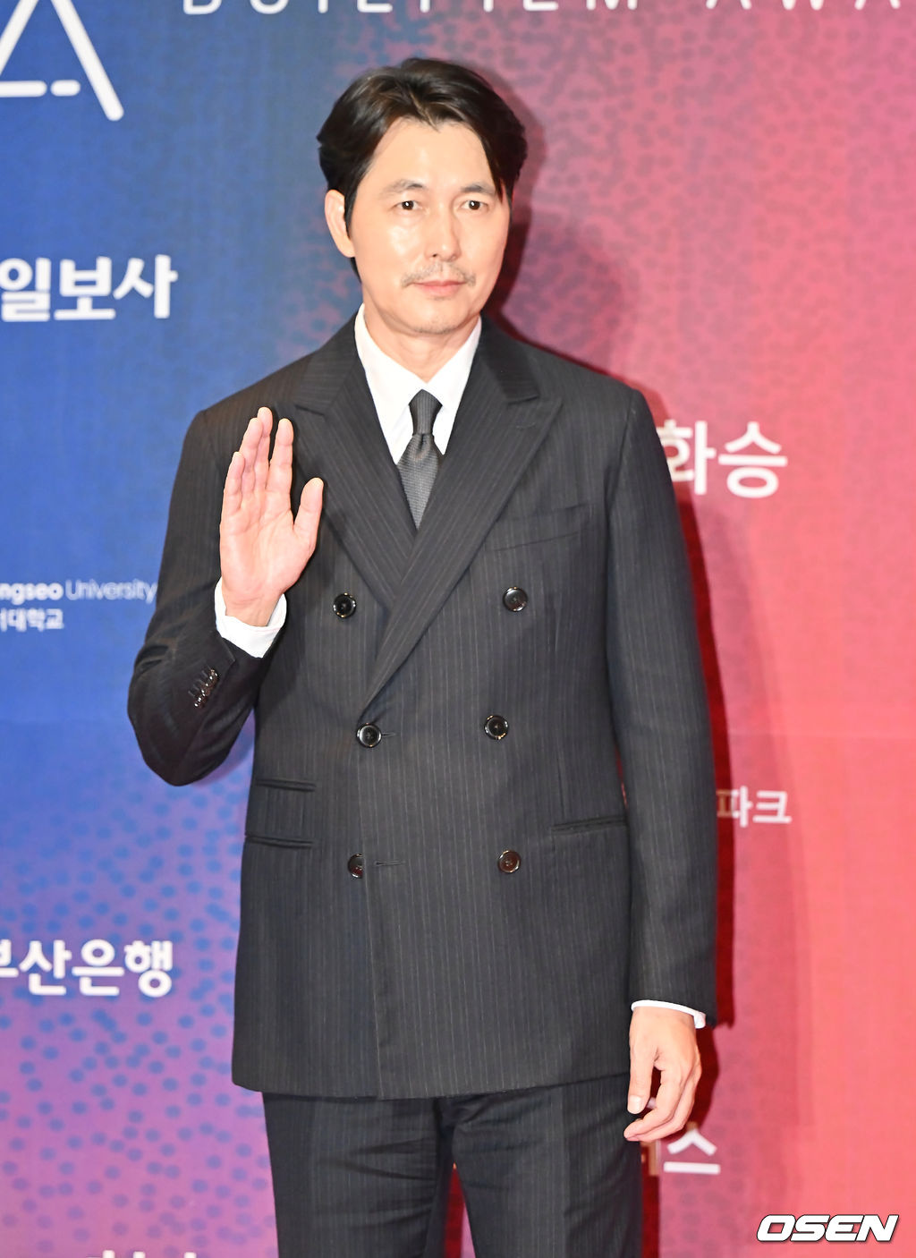 포토 타임 갖는 정우성, 손인사로 마무리
