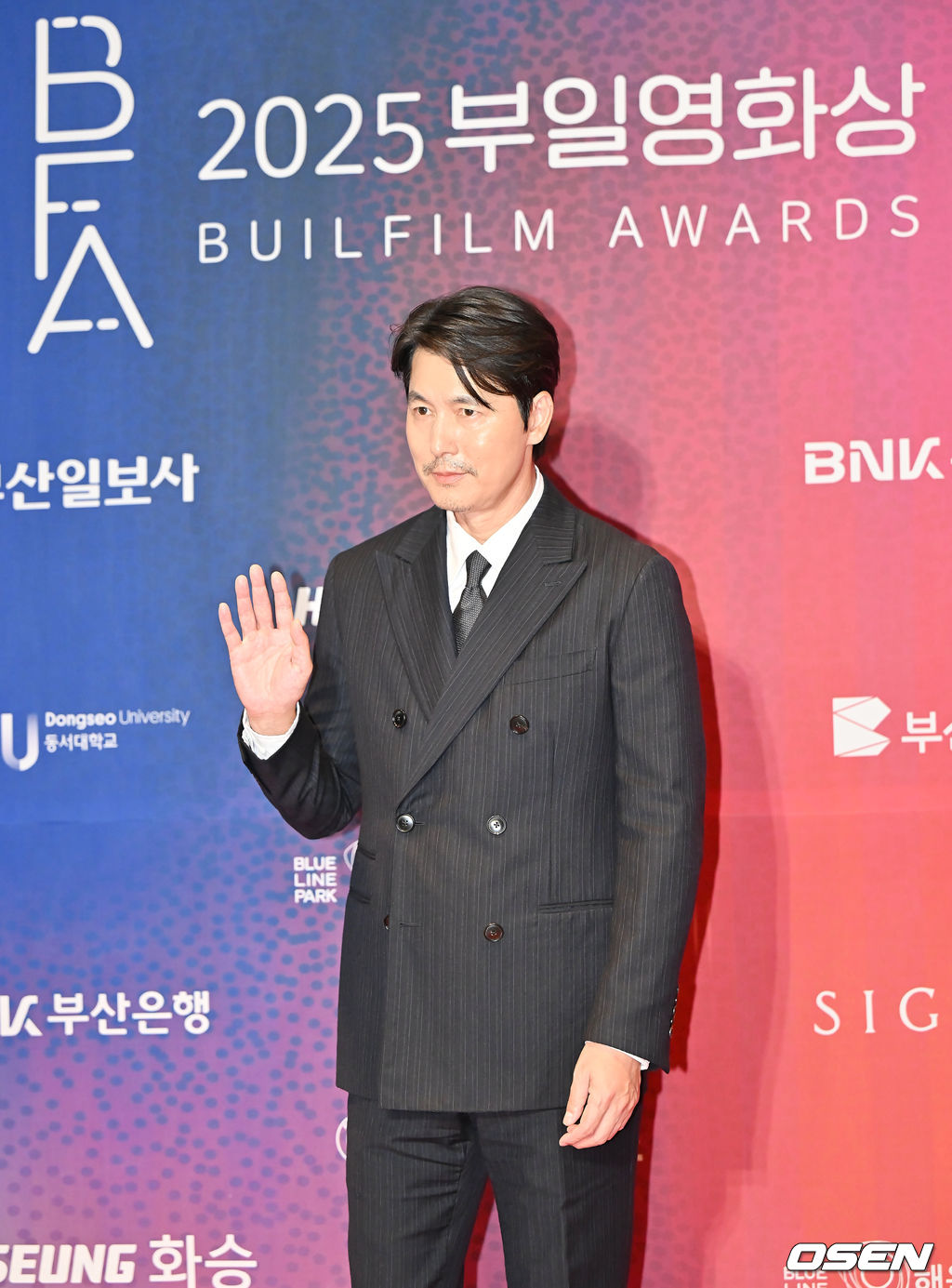 정우성이 핸드 프린팅 행사를 마치고 포토 타임을 갖고 있다. 2025.09.18 / foto0307@osen.co.kr