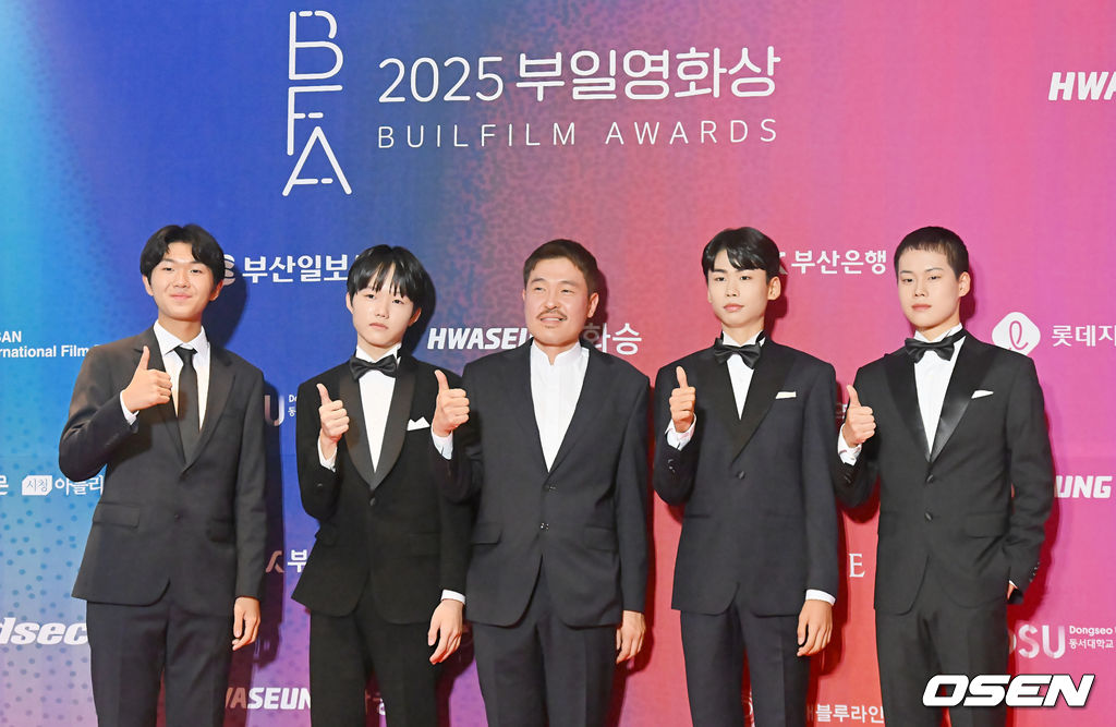 장병기 감독과 최현진, 이재준, 최우록, 정준이 포토 타임을 갖고 있다. 2025.09.18 / foto0307@osen.co.kr