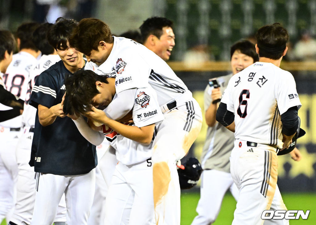 경기를 마치고 두산 강승호가 박준순과 승리를 기뻐하고 있다. 2025.09.18 /jpnews@osen.co.kr