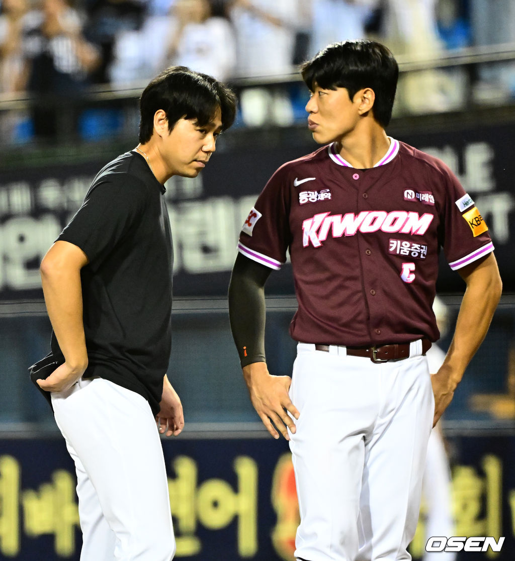 경기를 마치고 키움 하영민, 송성문이 패배를 아쉬워하고 있다. 2025.09.18 /jpnews@osen.co.kr