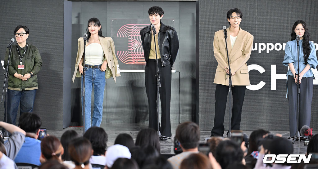 김륜희 제작자, 김유정, 김영대, 김도훈, 김이경이 야외무대인사를 하고 있다. 2025.09.19 / foto0307@osen.co.kr