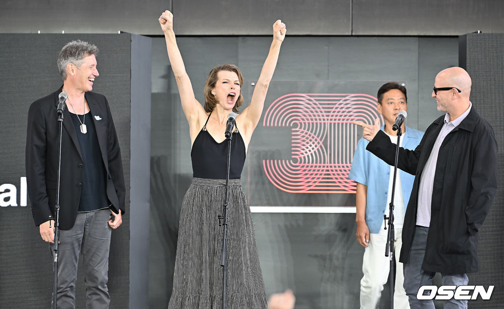 밀라 요보비치가 야외무대인사를 하고 있다. 2025.09.19 / foto0307@osen.co.kr
