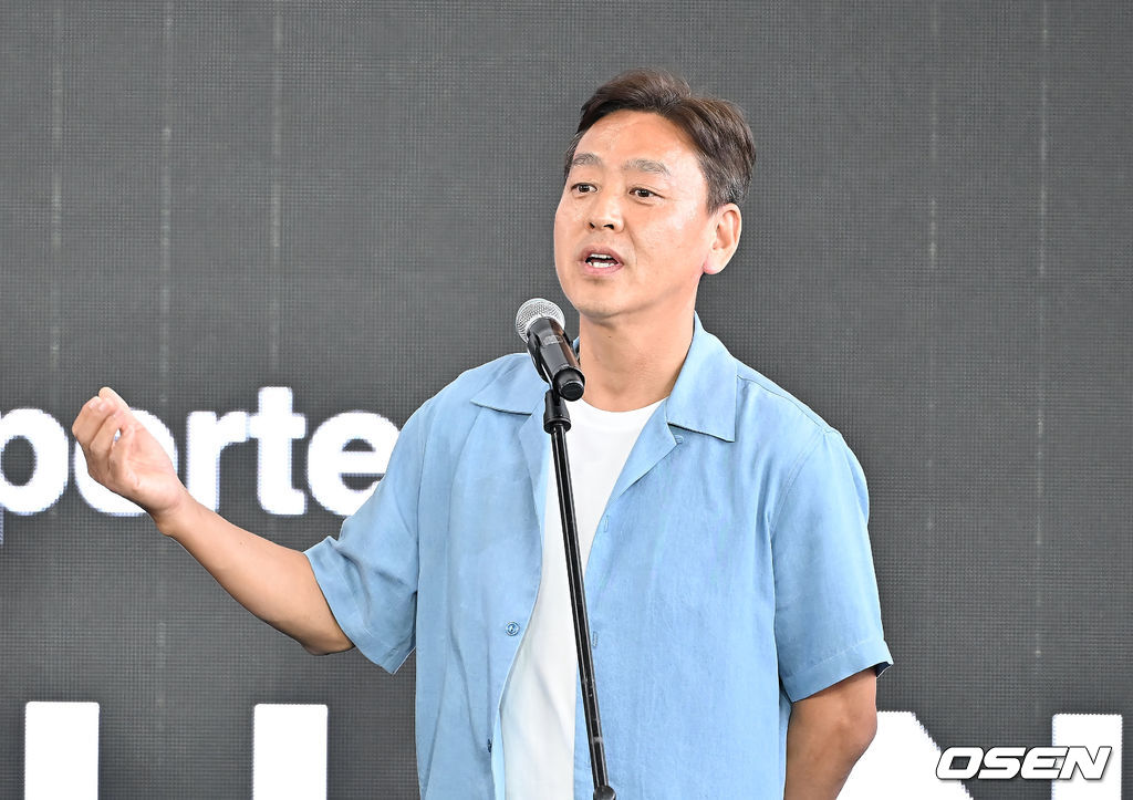 주방옥 프로듀서가 야외무대인사를 하고 있다. 2025.09.19 / foto0307@osen.co.kr