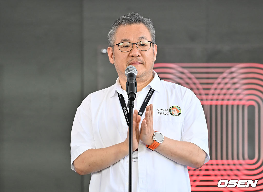 정용기 감독이 야외무대인사를 하고 있다. 2025.09.20 / foto0307@osen.co.kr