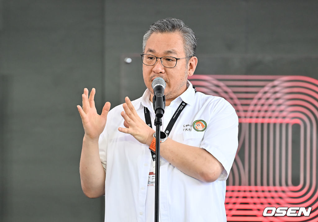 정용기 감독이 야외무대인사를 하고 있다. 2025.09.20 / foto0307@osen.co.kr