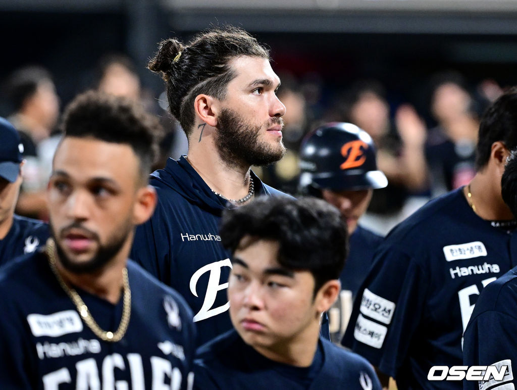 경기를 마치고 한화 투수 코디 폰세를 비롯한 선수들이 팬들에게 인사한 뒤 그라운드를 나서고 있다. 2025.09.20 / dreamer@osen.co.kr