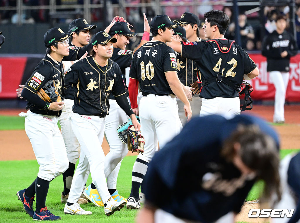 경기를 마치고 승리한 KT 선수들이 하이파이브를 나누고 있다. 2025.09.20 / dreamer@osen.co.kr