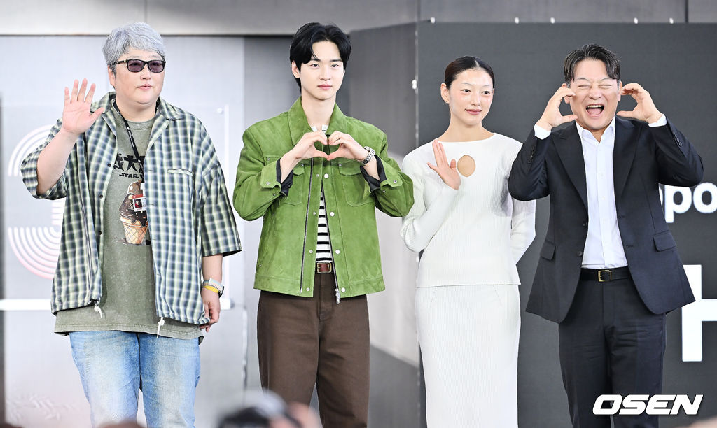 변영주 감독, 장동윤, 이엘, 조성하가 야외무대인사를 마치고 포토타임을 갖고 있다. 2025.09.21 / foto0307@osen.co.kr