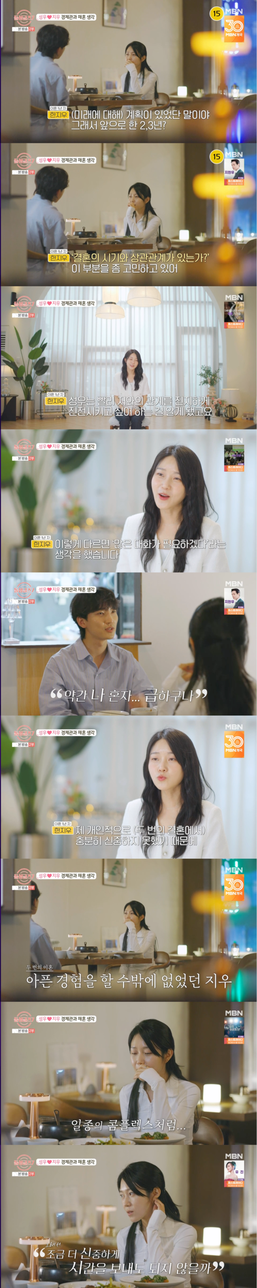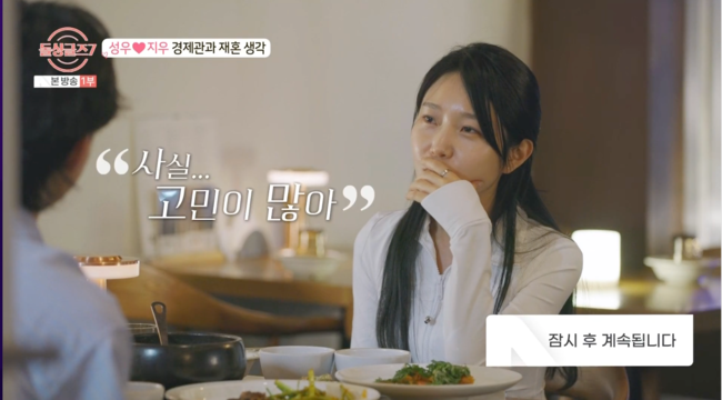 '돌싱글즈7’ 지우가 최종 선택 커플인 성우와 경제관에서 차이를 느꼈다.