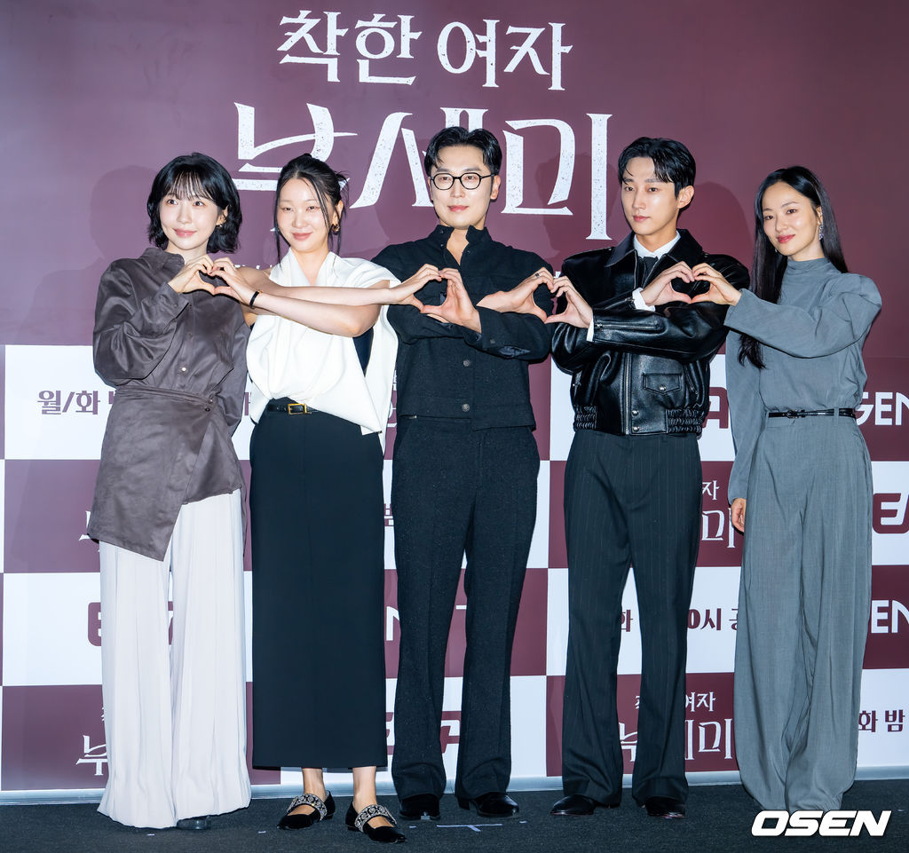 배우 주현영, 장윤주, 서현우, 진영, 전여빈이 기자간담회에서 포토타임을 갖고 있다. 2025.09.22 / rumi@osen.co.kr