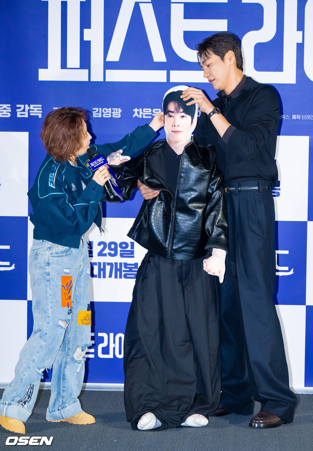 MC 맡은 박경림과 배우 김영광이 차은우 인형의 고개를 들고 있다. 2025.09.25 / soul1014@osen.co.kr