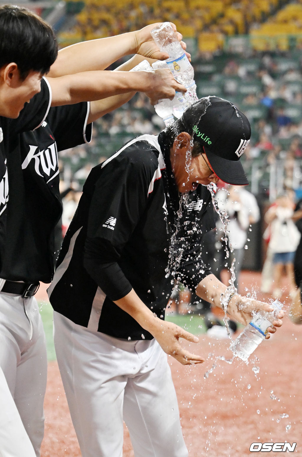 경기를 마치고 통산 1000경기를 치른 KT 이강철 감독이 선수들에게 축하를 받고 있다. 2025.09.25 / rumi@osen.co.kr