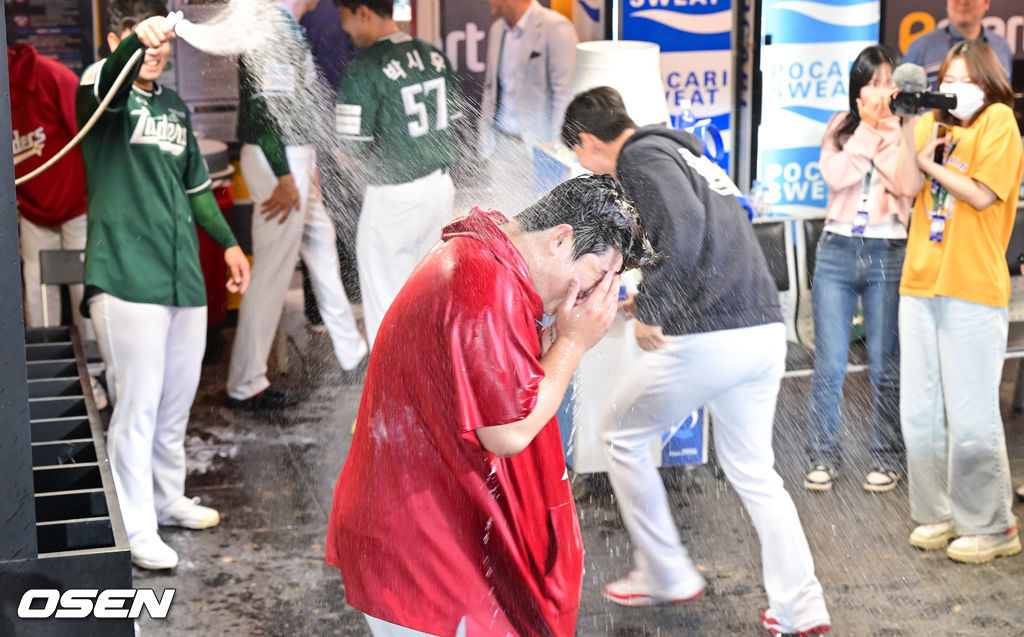 경기종료 후 30홀드 달성한 SSG 이로운이 동료들의 축하를 받고 있다. 2025.09.25 / soul1014@osen.co.kr