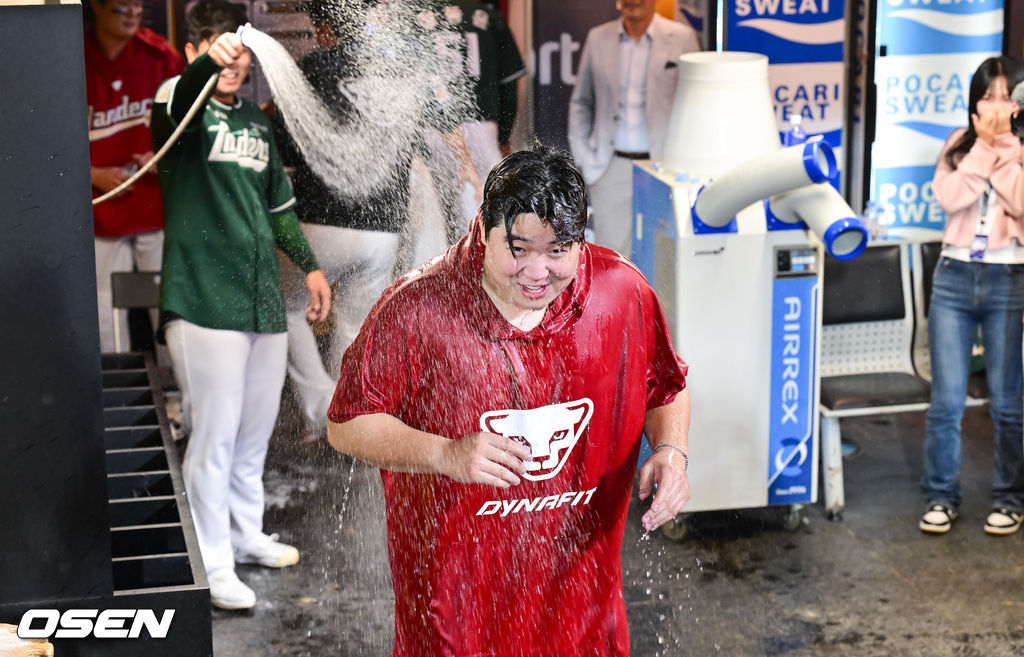 30홀드 달성 이로운,'끝나지 않는 축하 물세례